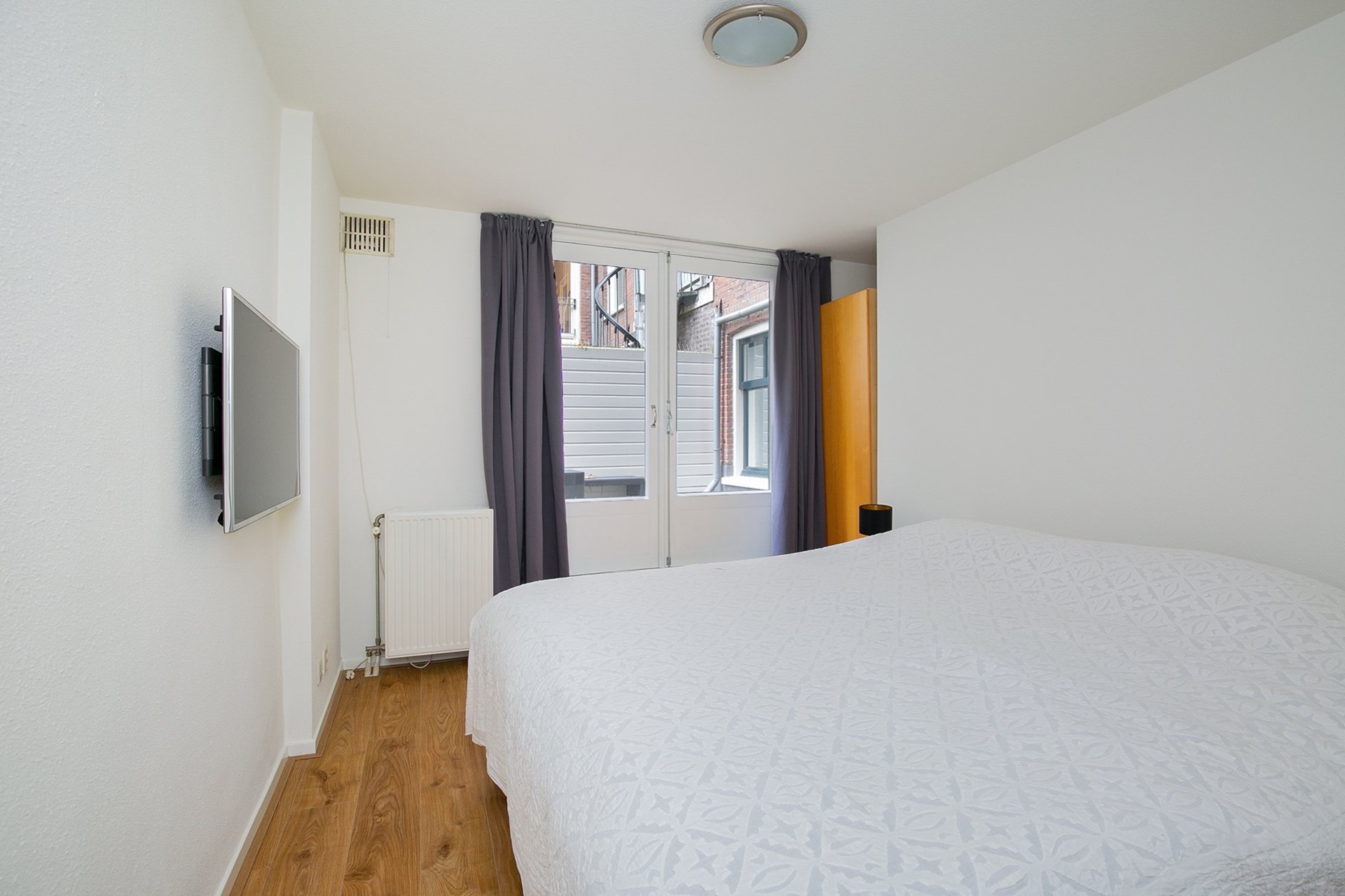 At the front is the spacious and luxuriously furnished living room with large windows that give a beautiful view of the Singelgracht.