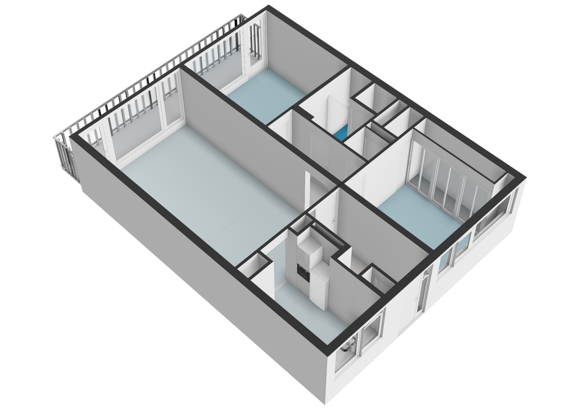 A second hallway, accessible from the living room, leads to the two bedrooms, bathroom and toilet. Both bedrooms are generous in size, the rear bedroom also offers direct access to the balcony.
