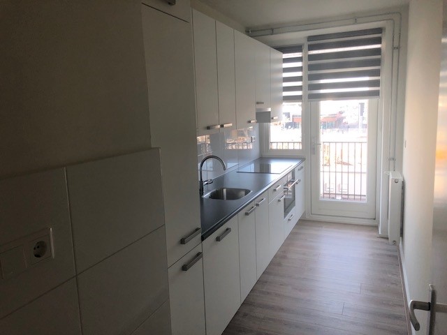 De keuken is volledig ingericht met o.a. een kookplaat, afzuigkap, afwasmachine, koelkast, vriezer en oven. De keuken geeft toegang tot een balkon.
