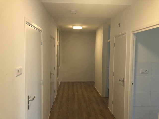 In het hele appartement ligt een laminaatvloer.