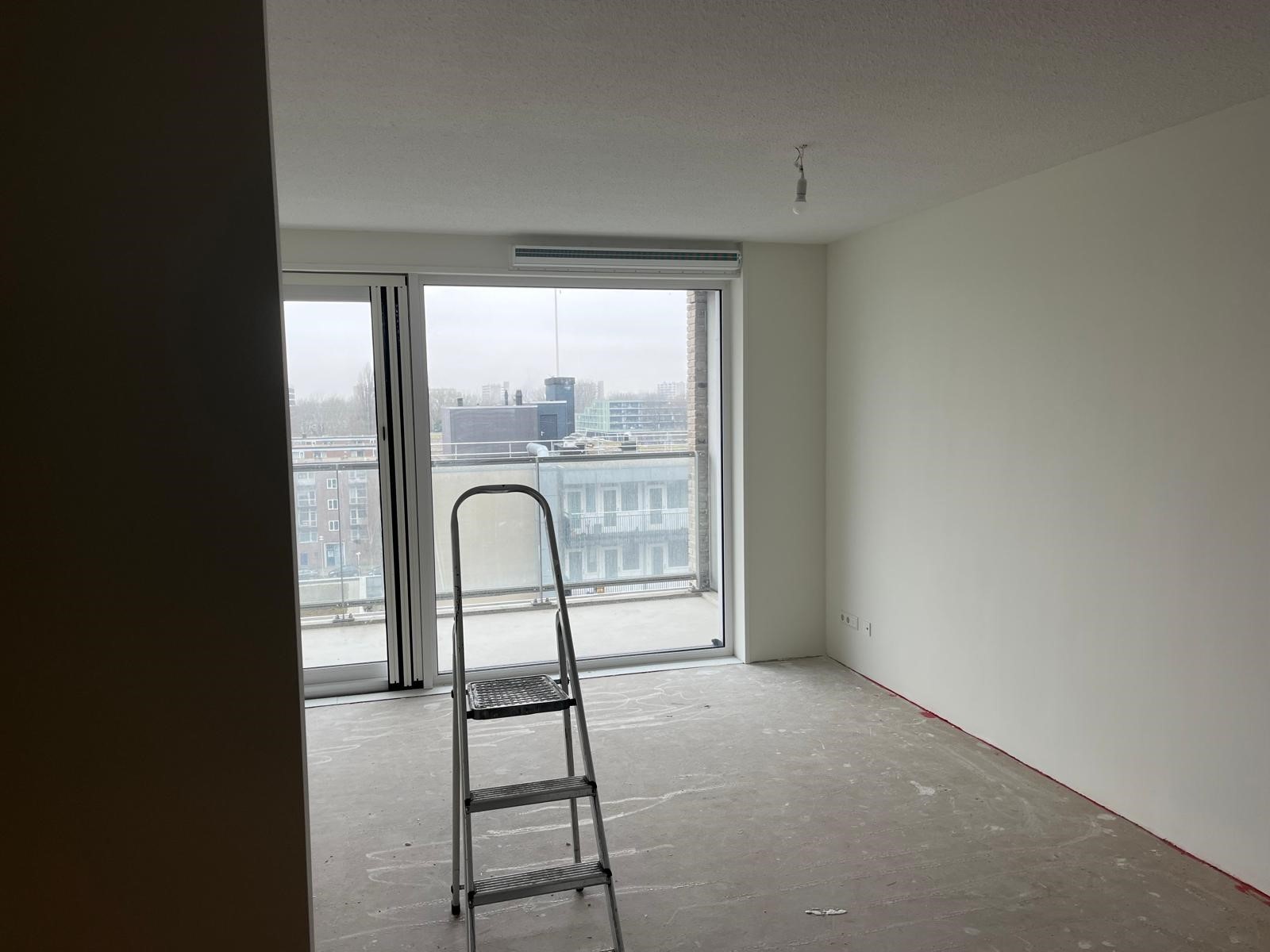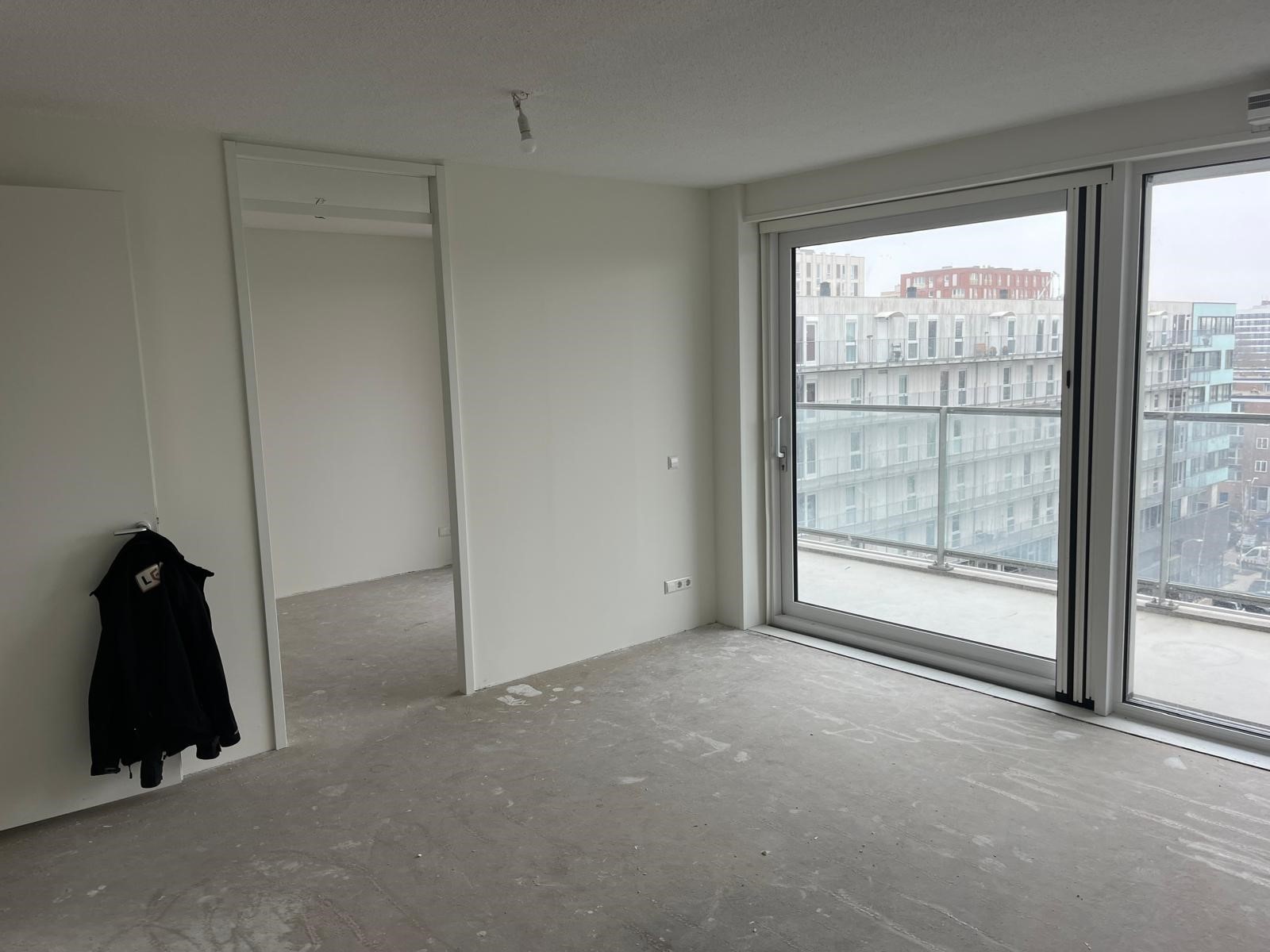 De woonkamer is ruim en geeft vrij uitzicht over de Sloterplas. De woonkamer geeft toegang tot het grote balkon met vrij uitzicht.