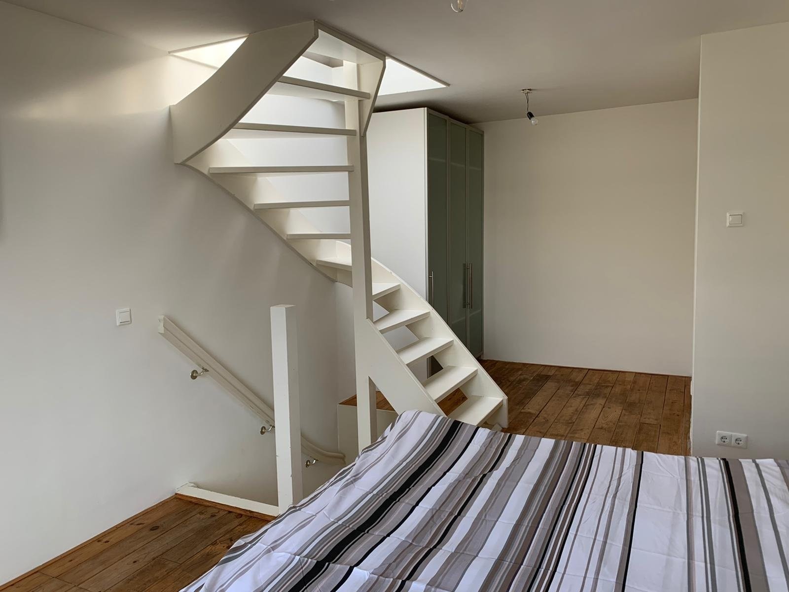 Via een interne trap komt u in de ruime tweede slaapkamer waar een tweepersoons boxspring bed staat. Deze kamer beschikt over veel kastruimte.