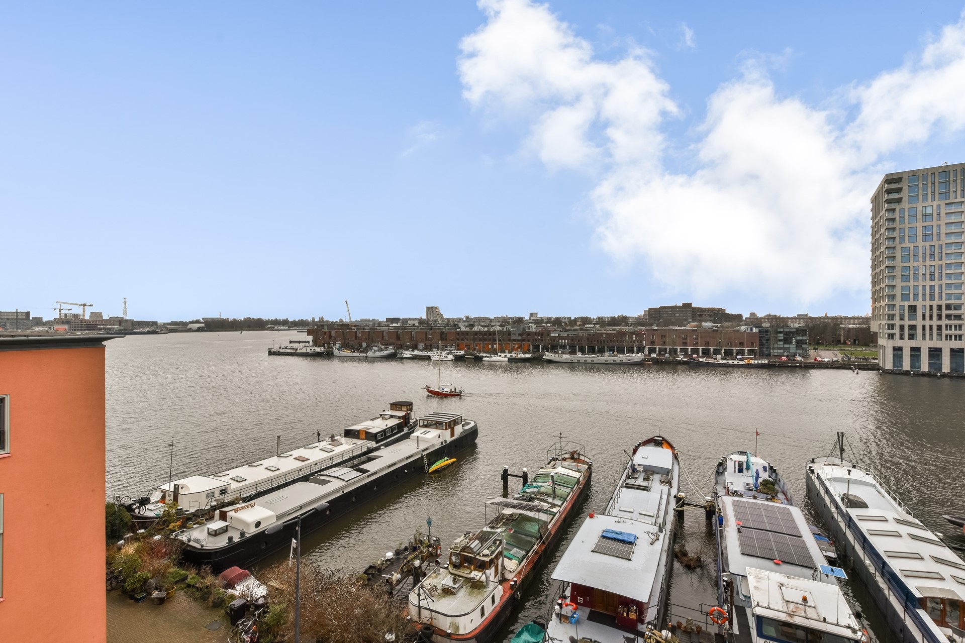 Enjoying a morning coffee on the balcony with a fantastic view of the IJ River and the houseboats? We offer this efficiently designed and comfortable apartment at Barcelonaplein. The apartment is located in a modern and energy-efficient complex with elevators. The complex was designed by architect Bruno Albert and is characterized by, among other things, the beautiful gate by Narcisse Tordoir. The complex also features a beautiful, architect-designed communal courtyard. Nearby, you'll find restaurants, terraces, supermarkets, shops, and public transport connections. Parking is available directly underneath the building.